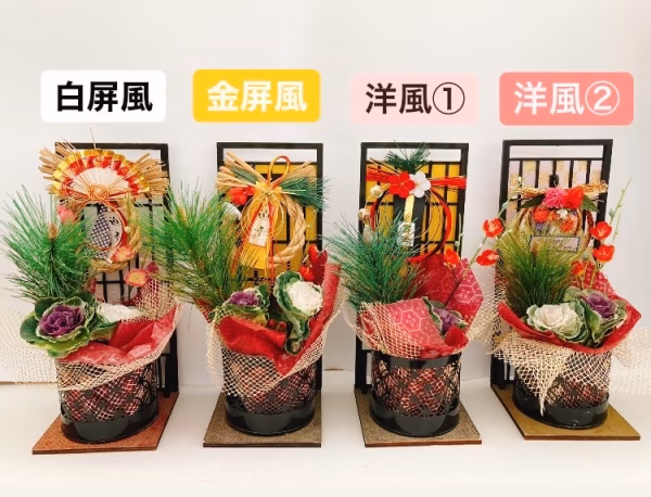 和風の金屏風と白屏風、洋風バージョン(2種類)の計4種類あります。