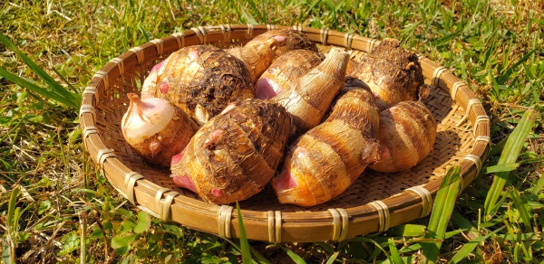 長崎の田舎の恵まれた気候と大地(大地は頑張って牛さんの由来の肥料を使って肥沃な土地にしております)で育てた里芋さんです^^