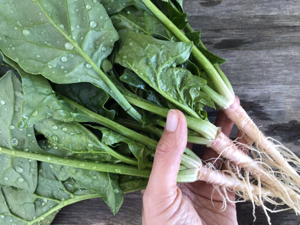 「ほうれん草の根っこが大好き」「いつも根っこの取り合いになる」というお客様がとても多いので、わたしたちのほうれん草は根っこ付きで丸ごとお届けしています。