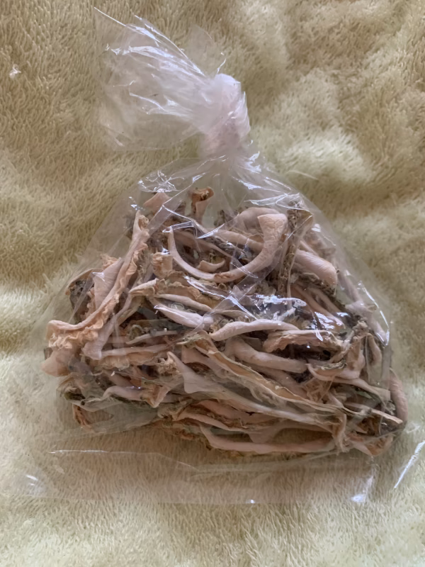 ワタと種を取り、スライスし、網に広げて天日で干しました。