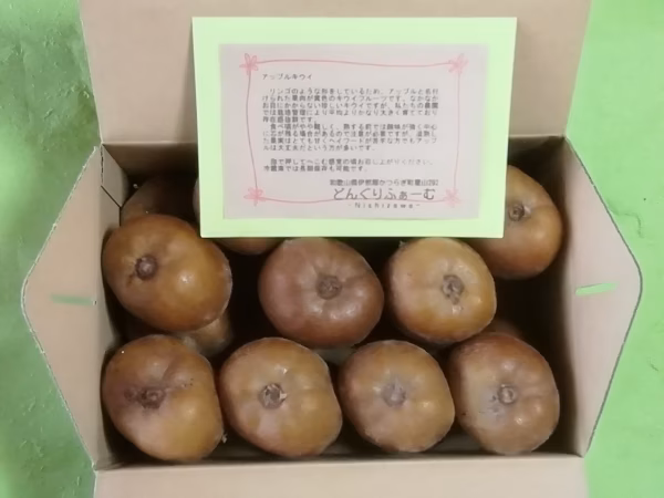 まだかたいですが、室温で、ビニール袋にキウイフルーツ5個に対してリンゴ1個をいれておくと1~2週間前後で食べ頃のかたさになります。冷蔵庫に入れて頂くと長期保存も可能です。