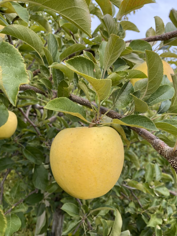 生産性が悪く、完熟期になると樹上で実が割れたり、生産者泣かせのりんごです。