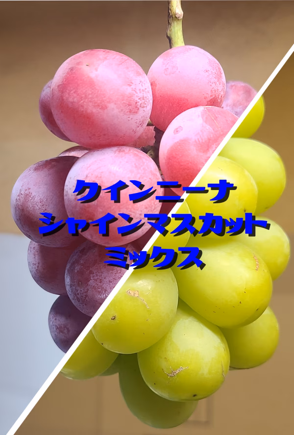 ご家庭用の シャインマスカット&クインニーナ 約2キロ(各1キロづつ)です。 合計で4房以上として梱包、お届けいたします。 ご家庭用ですので、若干のサビ、しみ、粒の不揃いなど見た目が若干劣りますが、お味は通常品と変わりなく美味しく召し上がっていただけると思います。 ▼商品概要 クインニーナ 一応、皮ごとは食べれるぶどうではありませんが(種はありません)、うちの家族は皮ごと食べています。 まろやかで上品な甘さが特徴で、酸味は殆どありません。シャインマスカットの影に隠れがちですが、ファンの多いぶどうです。 ▼商品概要 シャインマスカット シャキシャキの食感、甘さと爽やかな酸味が大好評のブドウです。 ※房数やサイズの指定はできません。 ※商品の特性上、粒が脱粒してしまう可能性も散見されますので、ご了承をお願い申し上げます。 ▼注文に際しての注意点(配送方法や納期指定など)/お届け時期 2021年10月1日頃~2021年11月上旬頃まで順次発送 ※発送時期は、例年の発送時期になっております。その年の天候や発育によりお届けが遅れる、又は早まることがあります。 ▼備考/注意事項 ※画像はイメージです。 ※(長野県より)配達可能2日エリア内の商品です。 ※発送日のご指定はしていただけません。万が一ご指定された場合にも、ご指定日に届かない場合もございます。ご了承下さい。 ※配送予定日よりも前に発送させていただく場合もございます。 ※お品到着後すぐに状態を確認してください。 ※お品の生育状況等によりまして、発送までにお時間をいただく場合がございます。 ※天候状況や栽培状況により色にばらつきがあることがありますので、色や個人の食感、味覚について対応はできませんのでご了承ください。 ※味覚や食感に個人差があるため、味や固さ、保存による傷みへのお問い合わせにはご対応できませんのでご了承ください。 ※生ものにつきお早めにお召し上がりください。 ※丁寧な梱包を心がけておりますが、配送時の揺れや傾きにより房から実が外れてしまう場合がございます。予めご了承いただきお申込み願います。 ※種なしの品種の場合もまれに種が入る場合がございます。