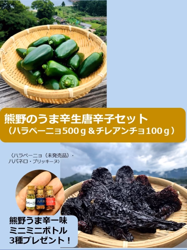 ▼自己紹介 私たち「くまの農業振興公社」は、唐辛子の栽培・商品作り・販売を行うため平成29年に立ち上げられた会社で、いつの日か「唐辛子といえば熊野」と言われるようになるという目標を叶えるため日々奮闘しています。