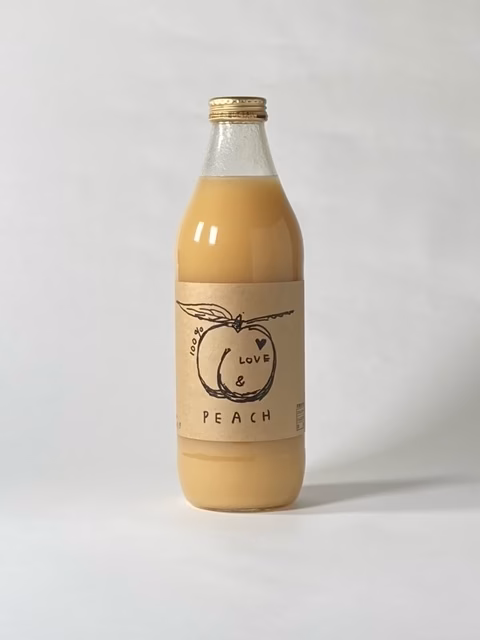 ▼商品概要 その名も「LOVE&PEACH」 この果汁100%ジュースは市場には出回ることのない、完熟の桃をたっぷりと使用した、まるで果実のような濃厚ジュースです。素材そのままの芳醇な香りと砂糖不使用の濃厚な甘さをお楽しみください。 化粧箱に入れてお届けしますので、ギフトにもご利用いただけます。 おいしい飲み方 1.まずはそのまま飲む   冷蔵庫で冷やす、または氷を入れて。果実そのものの味わいをお楽しみ   ください。 2.牛乳で割って飲む   いちご牛乳のようにまろやかになります。 3.スムージーやカクテルに   凍らせたジュースをフードプロセッサーにかけてスムージーの出来上   がり。ラム酒を少し加えてカクテルにも。 4.ドレッシングにも   最後にビンに残ったジュースでドレッシングが作れます。ビンに   ビネガー、塩コショウを入れてシェイク。容器にあけてオリーブオイル   を加えればドレッシングに! ▼数量、分量の目安 たっぷり1000ml。お友達やご家族でシェア、またはおひとりで贅沢に。