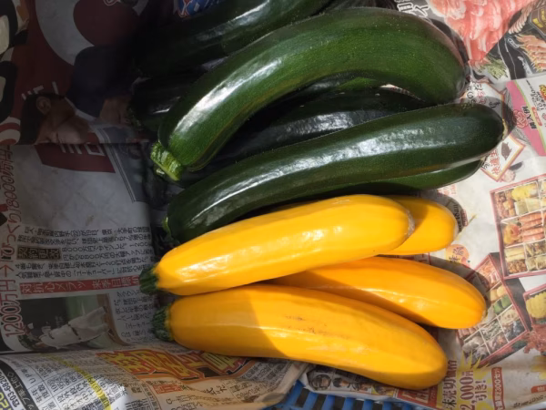 ズッキーニ。8本。緑タイプと黄色タイプの混合です(約半々ずつ。食味は、両者同じです)。