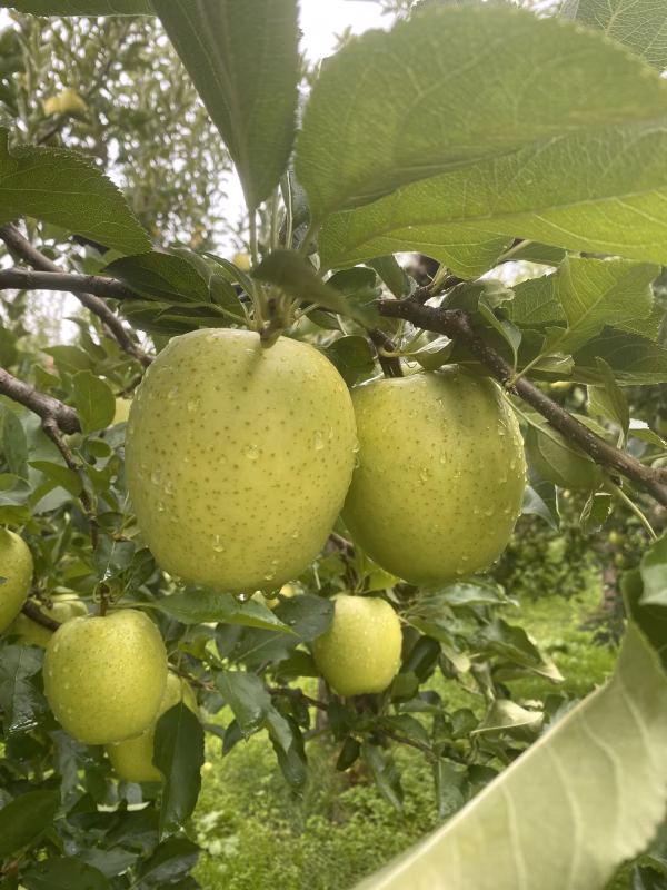当園の王林は樹齢40年以上の丸葉栽培の大樹になっています。力強い根は八甲田山脈の雪解け水を吸い、長い年月を掛けて育てられた樹のため、長年無肥料栽培です。大樹だからできる無肥料栽培、自然界のミネラルのみで育てております。