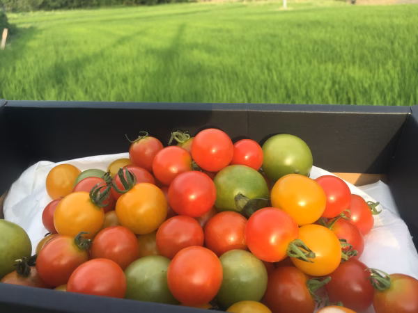 赤、黄、緑などのミニトマト品種をカラフルセットにしました。
