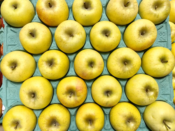 サクサクしていて、とてもジューシーで、甘味の中にしっかりとした酸味を感じることができる、さわやかな風味の黄色いりんごです。樹上で完熟したりんごをお届けします。