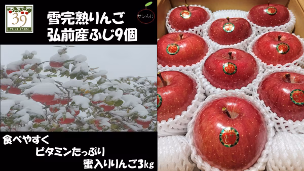 蜜入り雪完熟りんご弘前産サンふじ9個入り「約3kg」