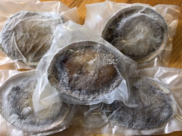 アワビは生の状態で計量しています、冷凍の際に水が切れますと目減りますのでご了承ください