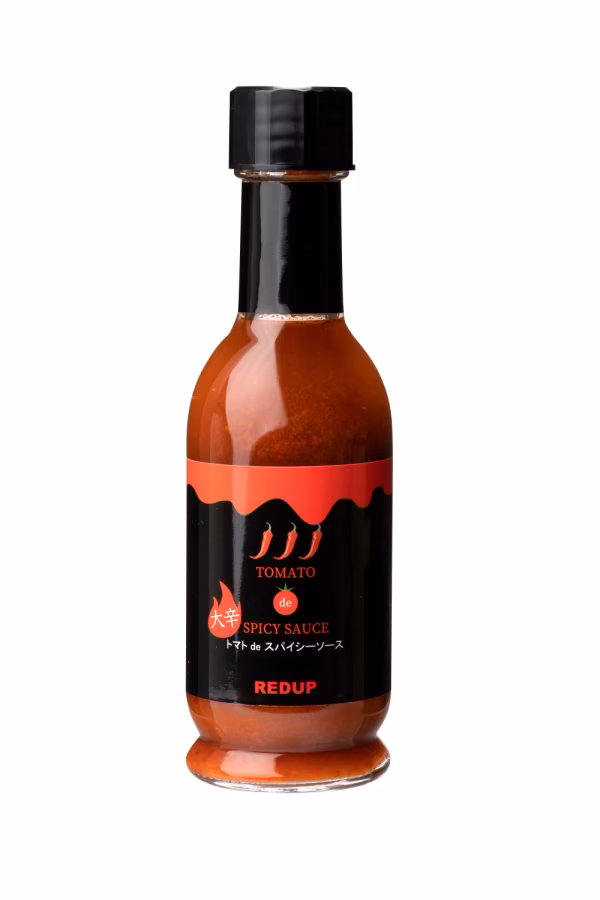 トマト de スパイシーソースは熊本の象徴する赤色を最大限に活かした商品で鯖とカツオの出汁とトマトから出るダシが決め手のタバスコです。