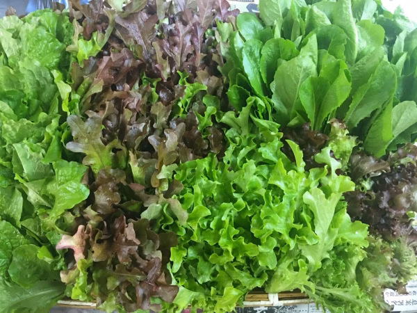 サラダ用の葉物野菜たちが、収穫時期になりましたので、60サイズの段ボールに詰め込んで出荷致します。