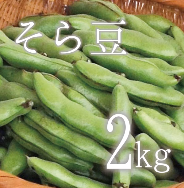 そら豆(さや付)、合計重量 2kg のお届けです。