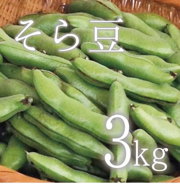 そら豆(さや付)、合計重量 3kg のお届けです。