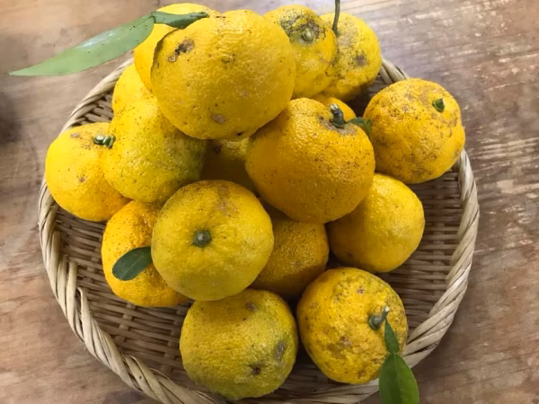 この柚子の樹は樹齢30年。定植されてからこれまで農薬不使用で育てられてきました 「桃栗3年、柿8年、ゆずの大バカ18年」と言われるくらいゆっくり育つゆず。ジックリ育つからこそ ゆずには豊富な栄養素が入ってます。 冬の寒さに耐え、夏の日差しを沢山浴びて育ったゆず、寒冷地のゆずは香りがより立つといわれています。ゆずの木の最高潮は30年。まさにピークの味わいをぜひ 自家製ゆずポン酢やゆずハチミツ。柚子風呂、30年間農薬不使用、無化学肥料栽培なので皮などつかったマーマレード、ピールなど色々お楽しみください。(一番↓にゆずポン醤油の作り方レシピあります) 今年は裏年で例年の1/2量となります。なくなり次第終了とさせていただきます) ご注文詳細メッセージに同梱(一緒に送りますので送料の追加かかりません)できる漬物などもご案内させていただきます。また風来の商品でリクエストの組み合わせがあればなんなりとおっしゃってくださいね ※樹の上で完熟させたため風雨で表面がこすれているものもありますのでご了承ください。それをふまえた上でのサービス価格となっております。 ※ゆずポン酢のレシピ(ゆずと一緒に下記のレシピでの作り方もおつけします) 生のゆず果汁を使うと香りが段違いです。副材料によって味もかわってきますので色々お試しください。 材料(200㏄分) ゆず果汁          40ml 酢             40ml 醤油            80ml みりん           40ml かつお節           3g 昆布        2g