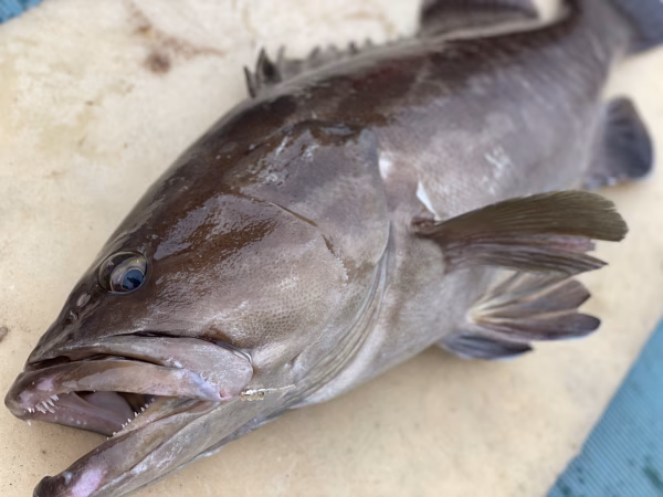 大きな岩がゴツゴツしていてクエが住み着きやすいポイントを狙って縄を仕掛け、約1時間後に回収しクエを釣り上げます。