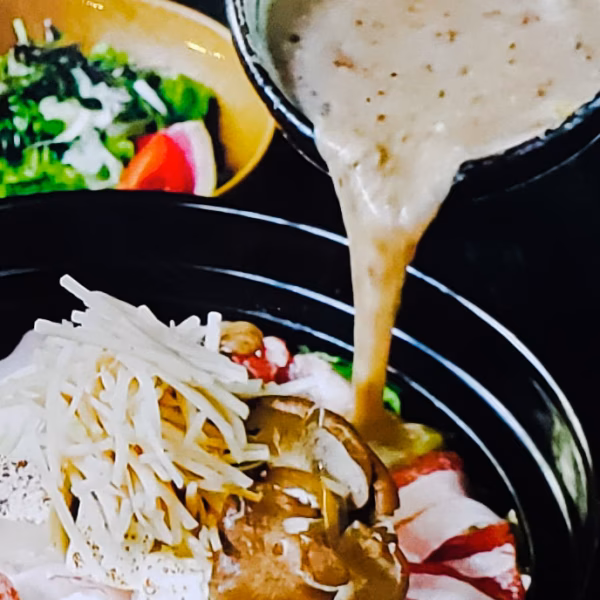 ・お鍋料理の仕上がり前に、すりおろした自然薯を上からかけて ひと煮立ち ワンランクアップの鍋料理の出来上がり!