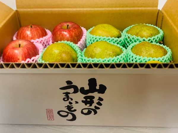 1箱3キロ入りです。ラフランスはLサイズ、サンふじりんごは小玉の食べきりサイズになります。