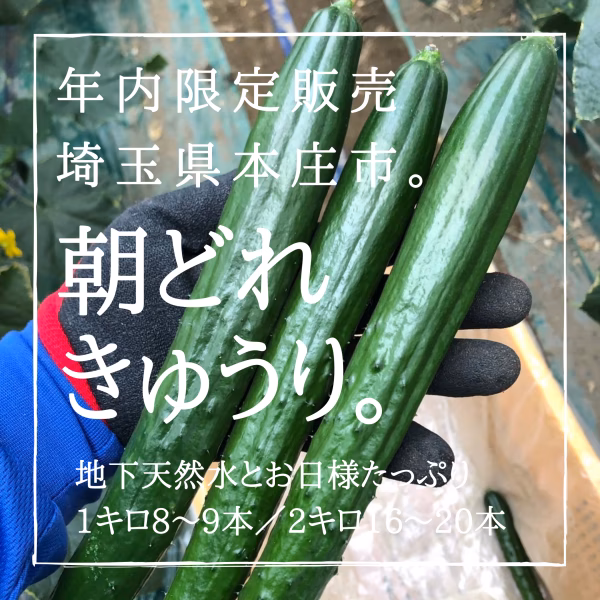 祖父、父、孫と半世紀以上の歴史をもつ老舗きゅうり農家のみずみずしい朝取れきゅうりです。