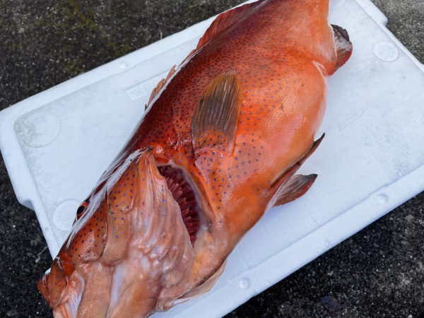 素潜りでの魚突きで捕獲しています。常に頭、エラ付近を狙うように意識していますが、体に撃つ事もあります。