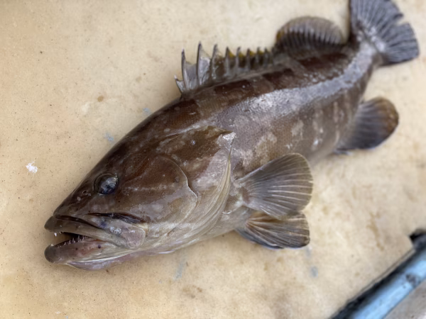 大きな岩がゴツゴツしていてクエが住み着きやすいポイントを狙って縄を仕掛け、約1時間後に回収しクエを釣り上げます。