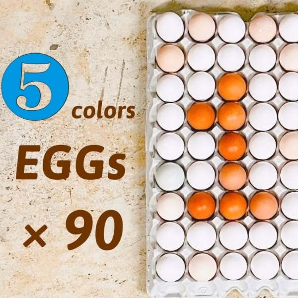2枚目は名古屋コーチン・国産鶏もみじ・国産鶏さくら・白卵の4種×各10個にアローカナ×5個を加えた計45個のカラフルなタマゴセットになります!