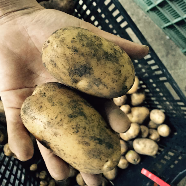 大変、栽培の難しい品種でしかも疫病や害虫に弱く、小ぶりなため、収穫も機械を使えず手作業なため、ほんの少ししか生産されておらず、あまり出回っておりません。