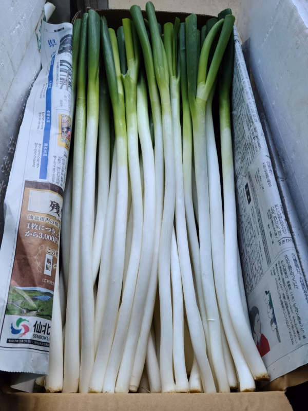 ②箱はコスト削減のため八百屋さんから貰っており、山形産と書いてますが秋田県にかほ市産のネギです。
