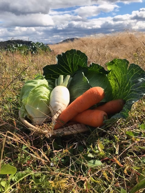 キャベツ1玉、レタス1玉、にんじん3本、辛味大根1本のセットになります。