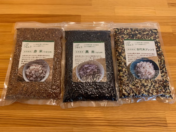 当園で販売している古代米ブレンドと黒米、赤米のお得なセットです。