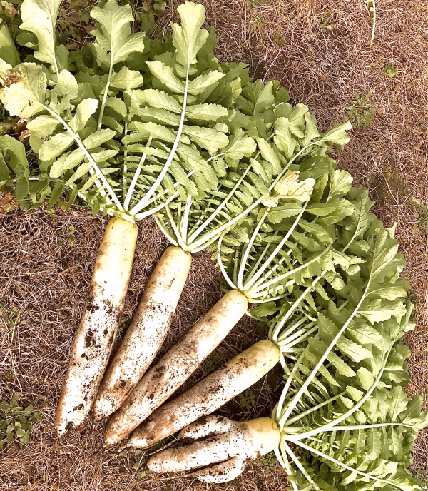 葉の部分は青菜として汁の実や炒め物など。乾燥させて長期保存するのもおすすめです。栽培期間中、化学農薬や化学肥料、除草剤は使用していません。ウチでも刻んで炒めて胡麻とかめんつゆで味付けしてごはんにかけてパクパク食べています。