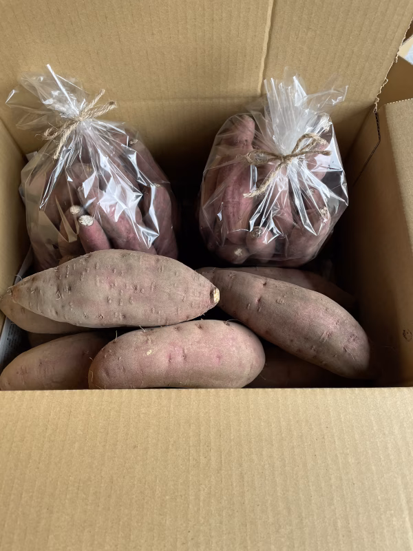 1個150g〜400g程度の食べごたえのあるサイズのさつまいも2.5キロと、1個30g〜100g程度の手のひらサイズのちび芋1キロ入り2袋のセットです。