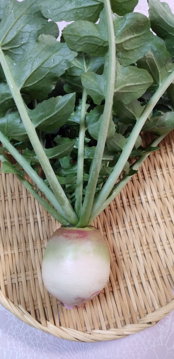 ▼自己紹介 野菜作り40年 地元、橋本市のブランド野菜 『高野山麓精進野菜』を栽培しています。 土作りから栽培までこだわり、家族の囲む食卓を豊かなものにしようと努力しています。 低農薬・有機肥料のみで栽培しています。 基本的には無農薬栽培をしたいと考えています。 夏場など、害虫の被害から守るため、やむを得ず農薬を使用しますが、農薬が切れた頃、害虫による食害も見かけられる場合があります。その点につきましては、ご理解のある方のみのご注文をお受けしたく思います。 ▼商品概要 紅芯大根、約1.2キロ葉つきのままのお届けとなります。 ▼品種・味の特徴・食べ方 紅芯大根 赤い色素の成分であるアントシアニンが含まれています。 ポタージュやサラダ、甘酢漬けやソテー等 ▼数量、分量の目安 80サイズの野菜専用箱に約1.2キロ程、葉付きのままのお届けとなります。 ▼栽培/生産方法、こだわり 土作りから栽培まで、一連の流れを自然環境下の元で、低農薬、有機肥料のみで栽培しています。 ▼注文に際しての注意点(配送方法や納期指定など)