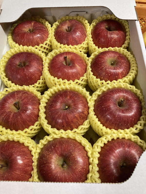 こちらは、特撰 樹上完熟サンふじの3キロ12個入です😊りんご🍎の甘〜い香りがなんとも言えない食欲をそそります。