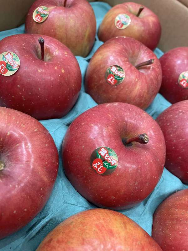 サンふじです。葉取らずサンふじは更に葉をつけたまま最後まで育てて収穫するりんごです。