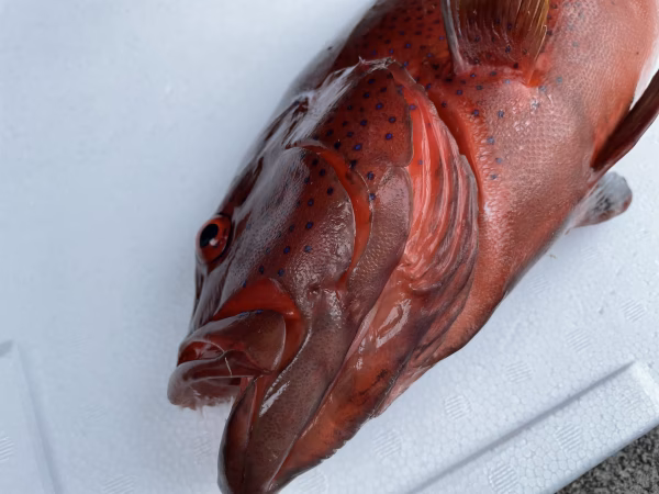 素潜りでの魚突きで捕獲しています。常に頭、エラ付近を狙うように意識していますが、体に撃つ事もあります。