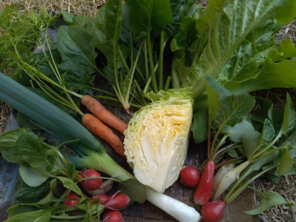 畑の様子を見て、5~6品種お入れ致します(写真は参考に)コンパクト便のため平飼い卵は入っていません!