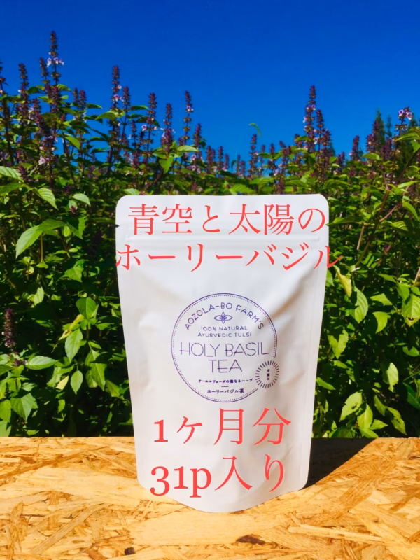 農薬・肥料などを使用せずに 青空の下、太陽をたくさん浴びて元気に育ったホーリーバジルを一番香りのよい花穂のみを一つ一つ丁寧に手摘み、乾燥させて香り高いお茶に仕上げました。
