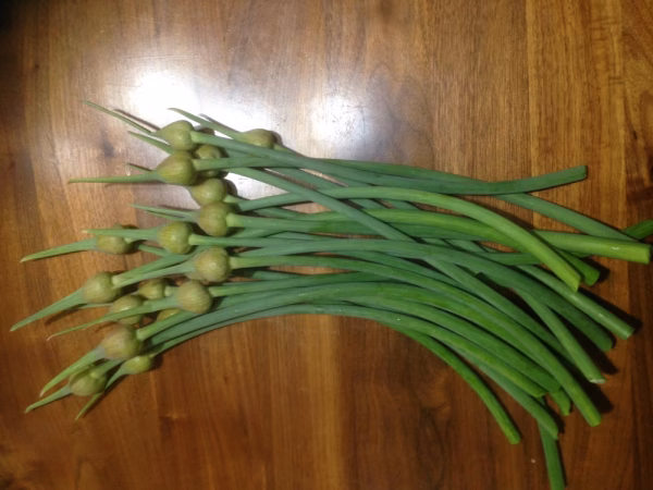 農薬と肥料を使用せずに栽培したジャンボニンニクの芽になります。