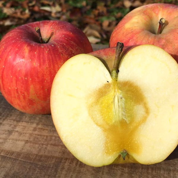りんごの内部が変色してしまう現象です。外観からは見つけることができません。内部褐変が見られる商品がございましたら、ご連絡くださいませ。対応させていただきます。その際、商品の画像を添付くださいませ。