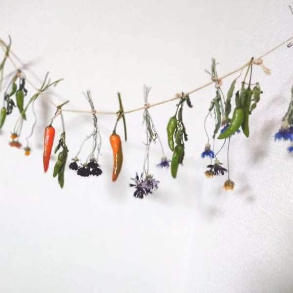 スワッグにリースに自然の色合いを。世界各国で唐辛子は魔除けとしてもインテリアに活用されています。