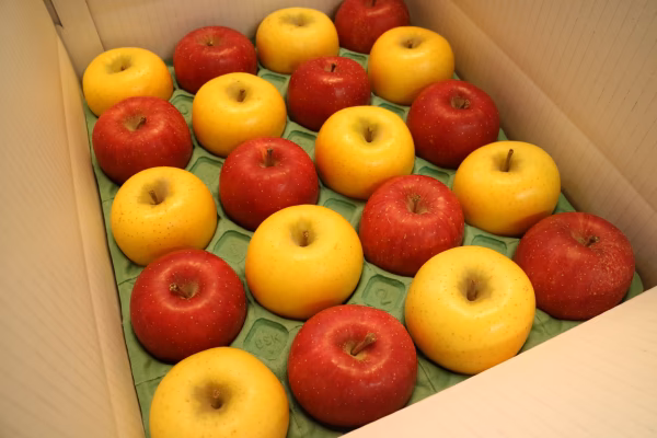 サンふじとシナノゴールドの詰め合わせセットになります。数も半分ずつになるようにお送りいたしますので、ぜひ食べ比べをお楽しみください。