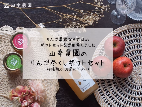 減農薬栽培で育った山幸農園のりんごをふんだんに使った加工品を、贈り物等にご利用いただけるセットをご用意いたしました🍎りんご農家ならではのりんご尽くしギフトセットです。旬を過ぎても楽しんでいただけるよう、たくさんの品種をご用意しております。製品情報詳細は、別途出品中のジャム・ジュースの販売ページをご参照ください。(その年の作柄状況により、取り扱い品種は変更になります)