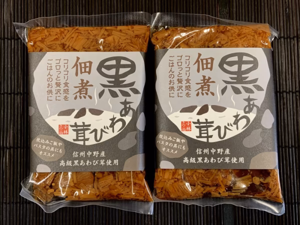小林きのこ園が丹精込めて育てた「黒あわび茸」と「えのき茸」を使った佃煮が登場しました。