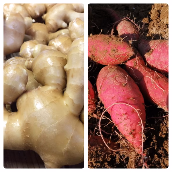 生姜とさつまいもは体を温める代表やさい。たっぷり食べて今冬は暖かくお過ごしください。生姜は、レシピを同梱いたしますので、シロップや佃煮に。紅はるかはお手軽焼き芋に!(そのままトースターに入れて約40分)