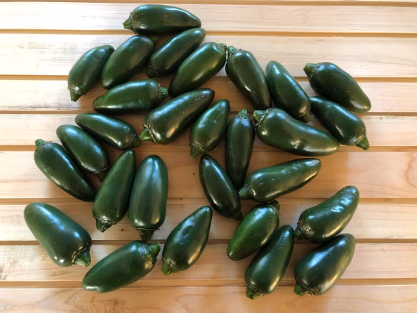 ハラペーニョ‥辛さの値40,000~50,000SHU(スコヴィル)と言われている日本の鷹の爪に比べ、ハラペーニョは2,500-8,000SHUととてもマイルドで、香辛料としてではなく具材として料理に使用します。