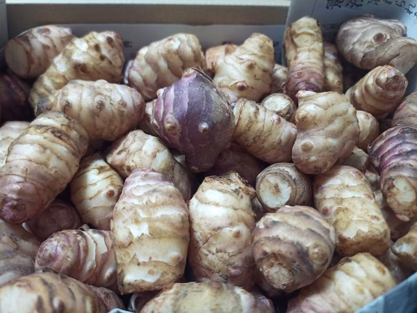 イヌリンが豊富に含まれスーパーフードと今話題の菊芋(きくいも)です。