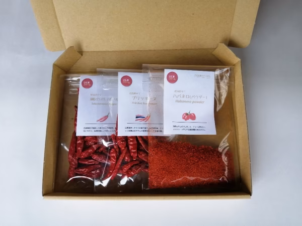 自家栽培で採れた完熟のハバネロ、プリッキーヌ、鷹の爪の3品種をじっくり自然乾燥、辛みと旨味を凝縮しました。ハバネロは粉末、プリッキーヌと鷹の爪はホールのセットです。お料理に合わせて辛味調味料としてお使いください。