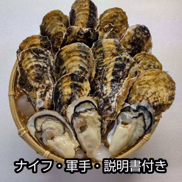 ・1年もの殻付き牡蠣に軍手・ナイフ・説明書付きです。